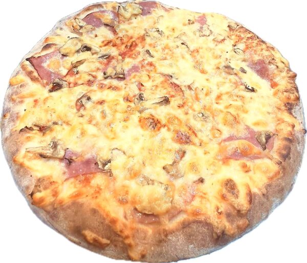 Aluat pizza, sos pomodoro, sunca, ciuperci, produs lactat